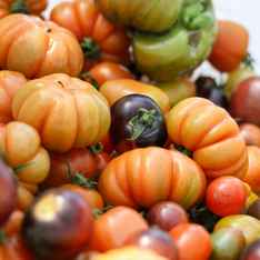 What is purple, small, and rinsed off in a drainer?
