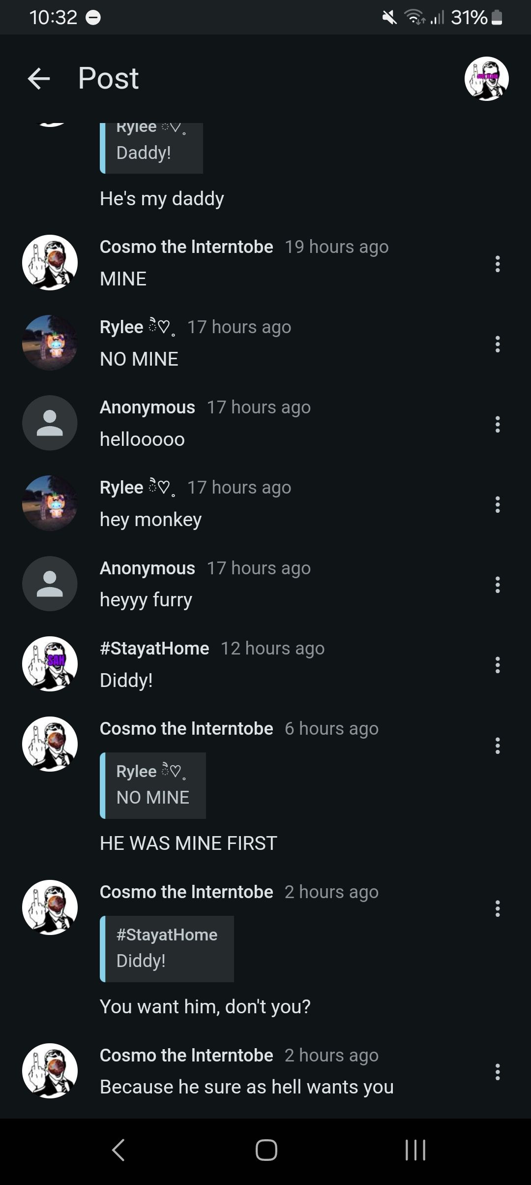 Rylee ੈ♡˳1 year agoCosmo idkyou have a blackkkkkkkk guy already. You can have himactually not no more