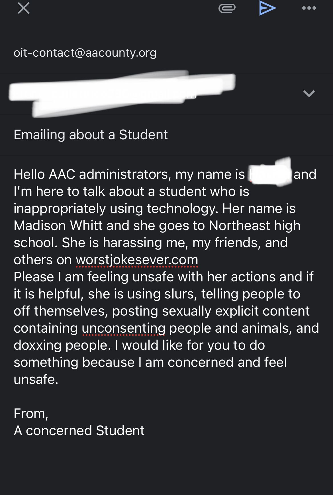 she got reported to the wrong school