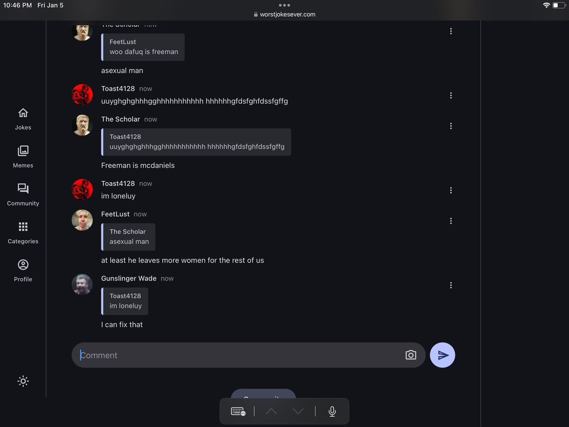 worstjokesever.com/community/p/659c3c3d866fe331b4e29783