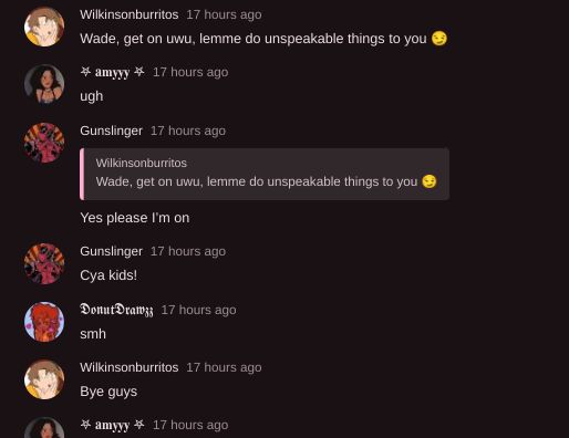 The Unknown King of Moderation2 years agoεη°wilk,jake ,dagger,sah, and ethan r modsWilkinson Burritos is really horny