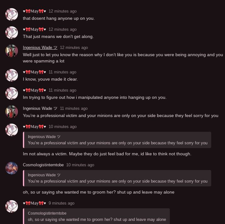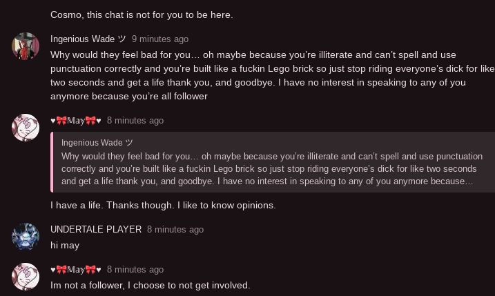 Ingenious just hates may for some reason and thinks Cosmo is a pedo