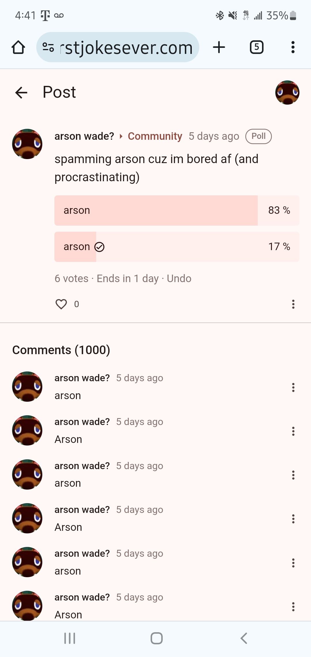 If u click my profile and see my community posts ur gonna find me spamming arson 💀💀💀💀