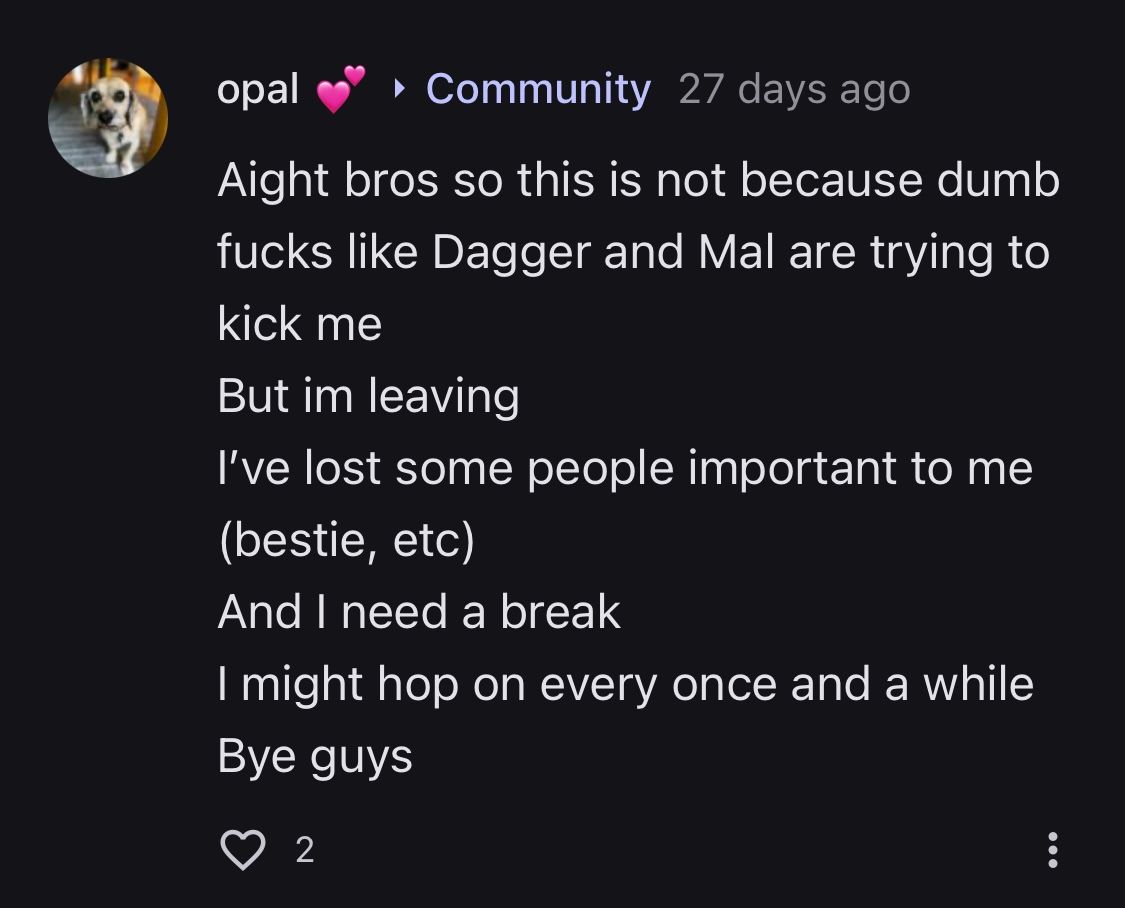 opal left the website and also we’ve had conversations on here 💀