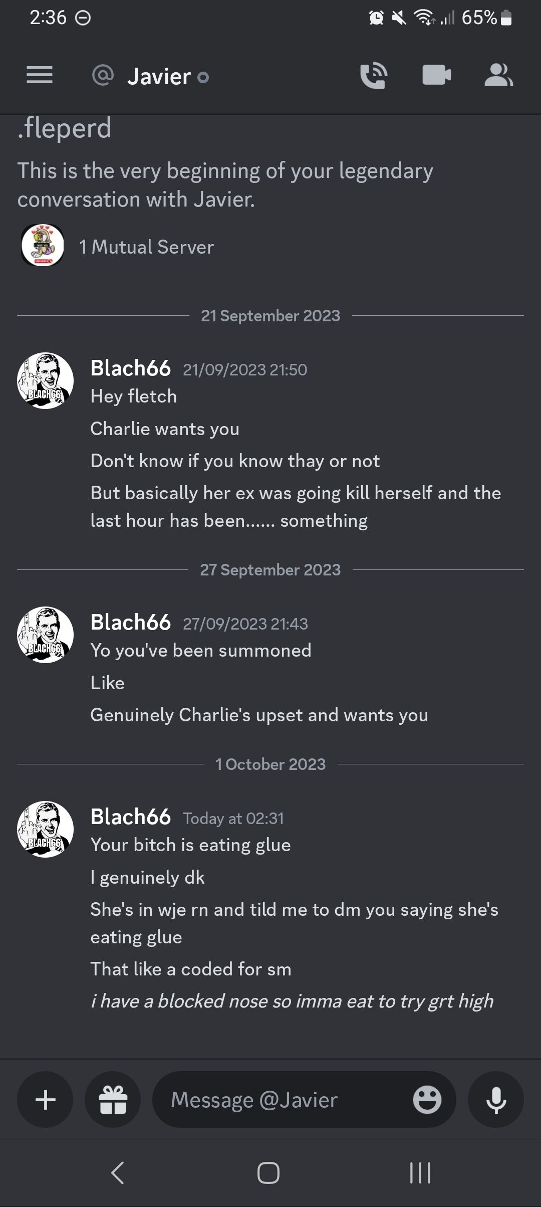 He hasn't said shit ti me yet in discord