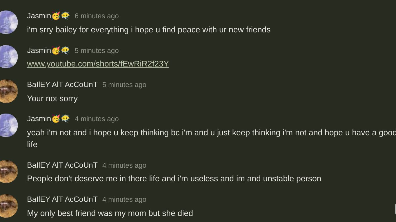 i'm srry bailey for everything i hope u find peace with ur new friends