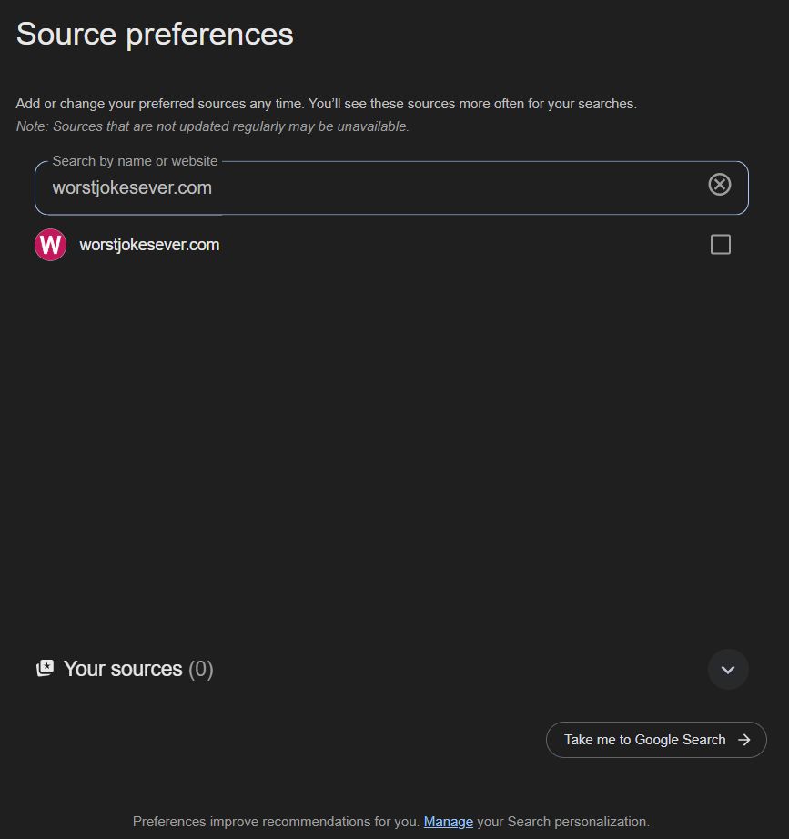 You can now add websites to your Preferred Sources. Google has launched this feature in the US, and I’m wondering if it works for WJE or only for news/blogs.