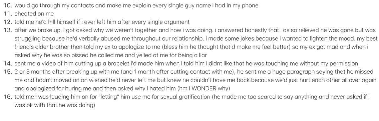 im making a list rn cus i saw a reel of this girl listing things her ex did but it progressively got worse and i thought itd be funny to do that