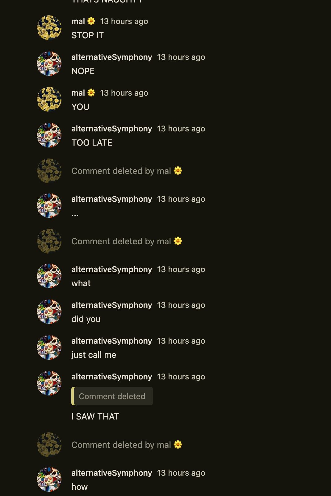 me breaking into mal's house to remind her she can't delete comments irl