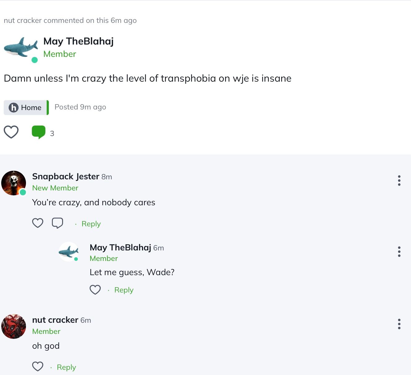 Lol May made a post about transphobia on here being crazy