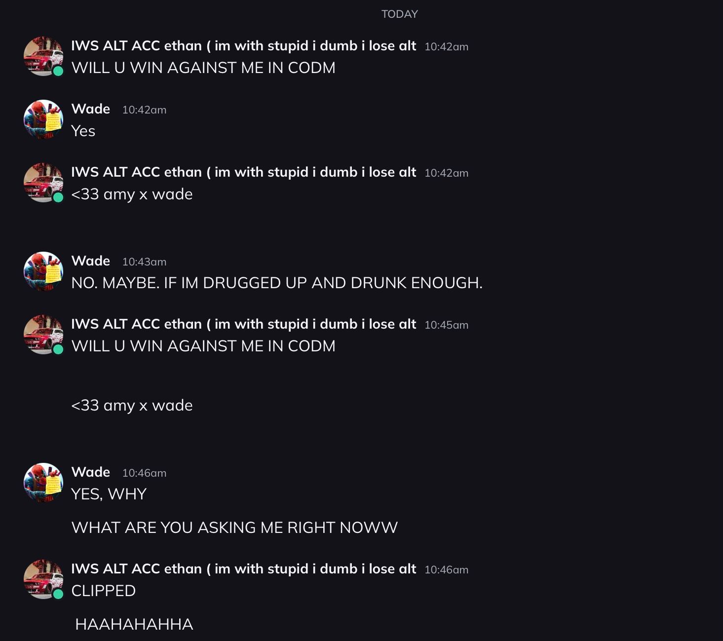 Kristian‽1 year agoℑ𝔪 𝔚𝔦𝔱𝔥 𝔖𝔱𝔲𝔭𝔦𝔡gae dipped cuz i exposed lmaonah its cuz its the last day of the grading period