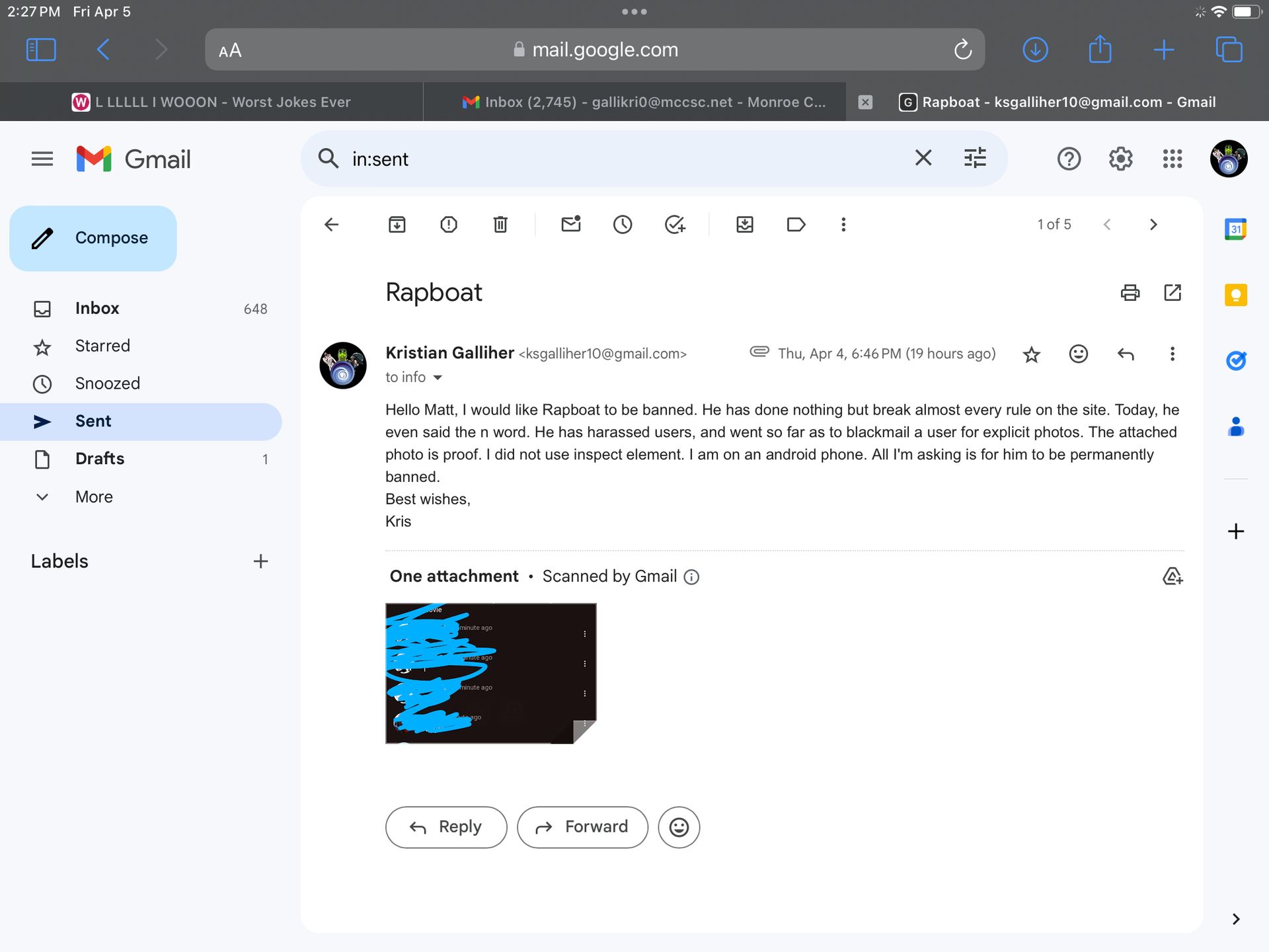 Kristian‽1 year agoℑ𝔪 𝔚𝔦𝔱𝔥 𝔖𝔱𝔲𝔭𝔦𝔡before or after i told him the rules , and i need proof.i had the screenies but i blurred him out in the email