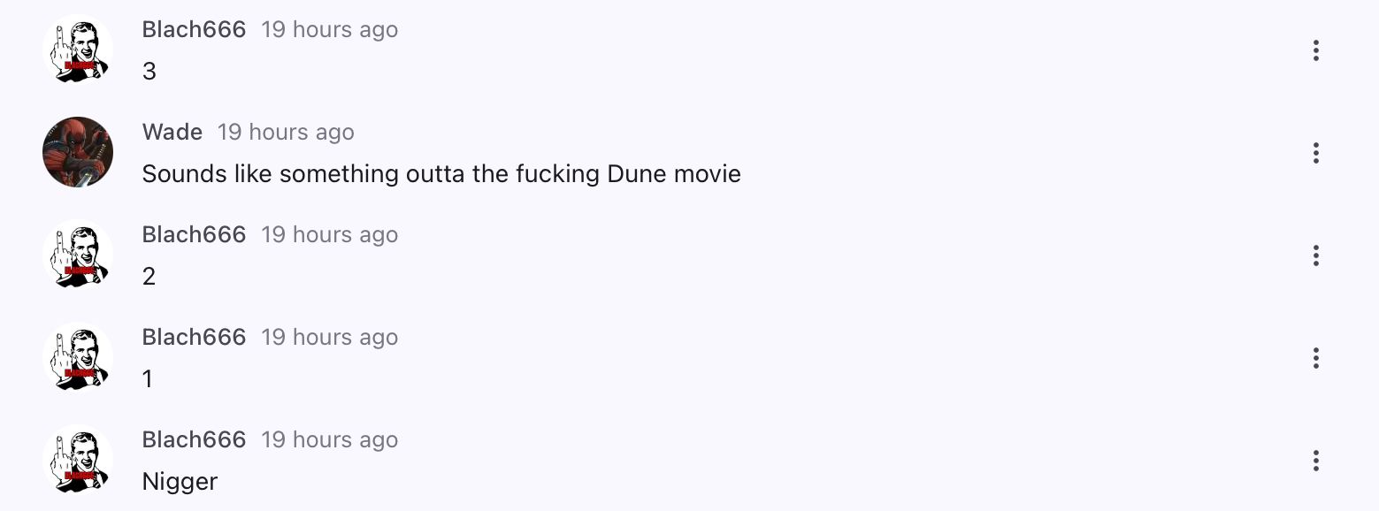 Anonymous1 year agoℑ𝔪 𝔚𝔦𝔱𝔥 𝔖𝔱𝔲𝔭𝔦𝔡No one on this site has any fucking pass to say the n - word , im going to talk to jake about this aswell wit hsaw.Woah, how can someone misspell Sah so much