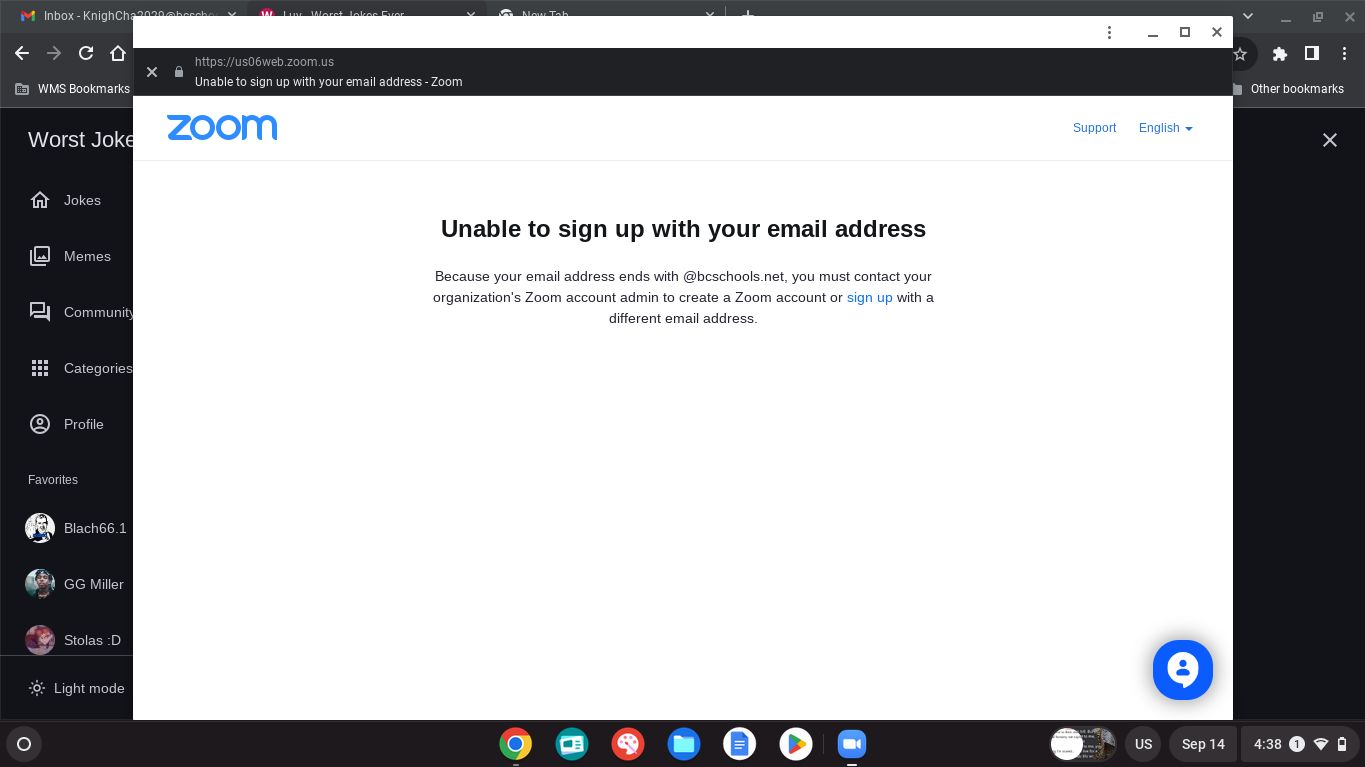 If you make a zoom i can join it but I js cant sign into my acc and make one