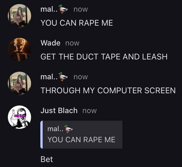 Anonymous1 year agomalits not rape if you got consentWe got your consent? I don't think your BF rap boat would be happy if he knew