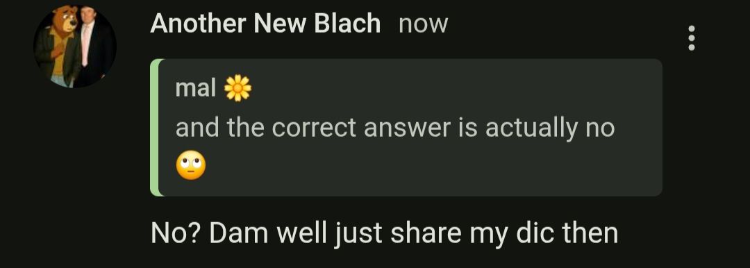 No? Dam well just share my dic then