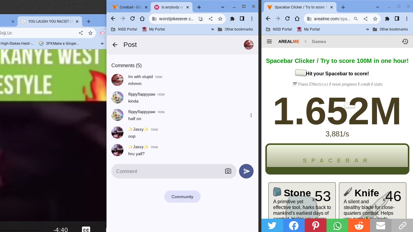The Unknown King of Moderation2 years agoβ¨Jassyβ¨i thnk chex left bc she was getting her chrombook takenOh well thatβs nice