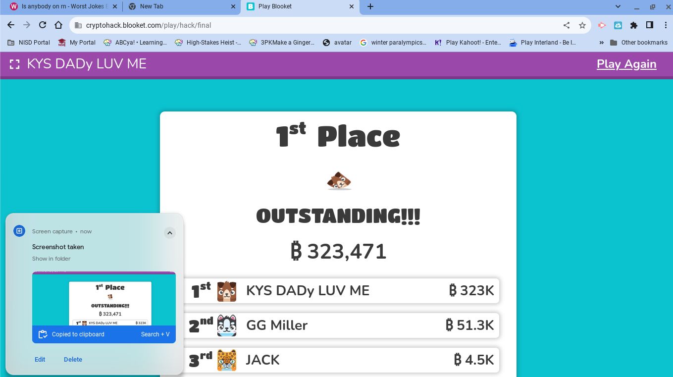you should see me in blooket/kahoot/gimkit/quizizz/whatever else