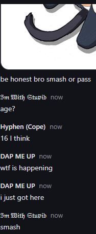 Hyphen (Cope)1 year agoℑ𝔪 𝔚𝔦𝔱𝔥 𝔖𝔱𝔲𝔭𝔦𝔡age is pretty close bruI think you forgot the part I said "think"