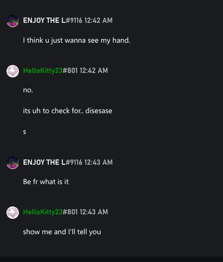 "hey wanna make sure your hands arent suffering from a disease, can i have a pic of them please?"