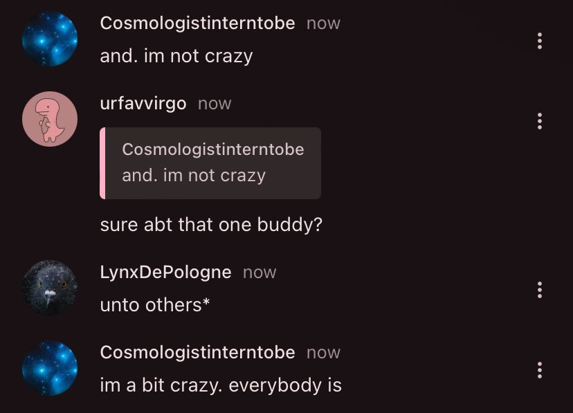 If u wanna like, vent to me on discord abt it (I wont judge u or tell anyone else I double pinky promise) I'll listen. Im not there rn but Ill read it soon