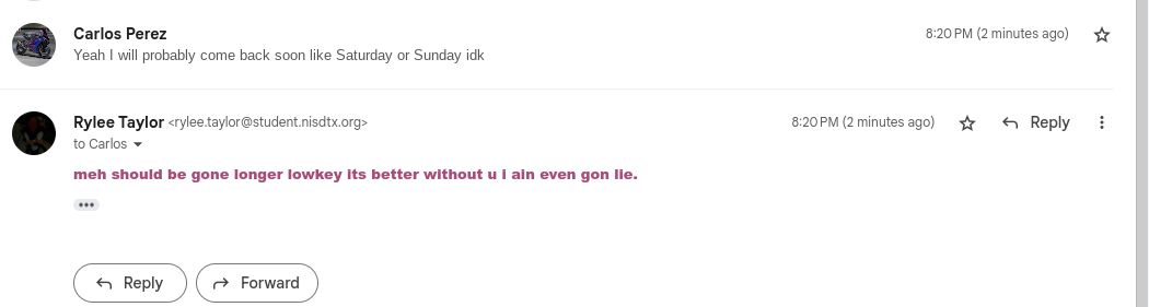 "You know what? Know, just cause your mad ass doesn't like me and is mad about my joke, I'm not gonna get ass hurt about it, fuck you, I don't give a shit, your just a retarded ass bitch who can't take a joke and doesn't know when not to sross a line, so stfu and if you wanna message me, be respectful of me and try to be kind, or I'll say "fuck it" and go off on your ass"