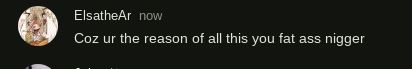 Cosmologistinterntobe2 years agoHeroin Monkeyi can post the screenshot of el saying the n word againnot with el. i don't want any more drama with el