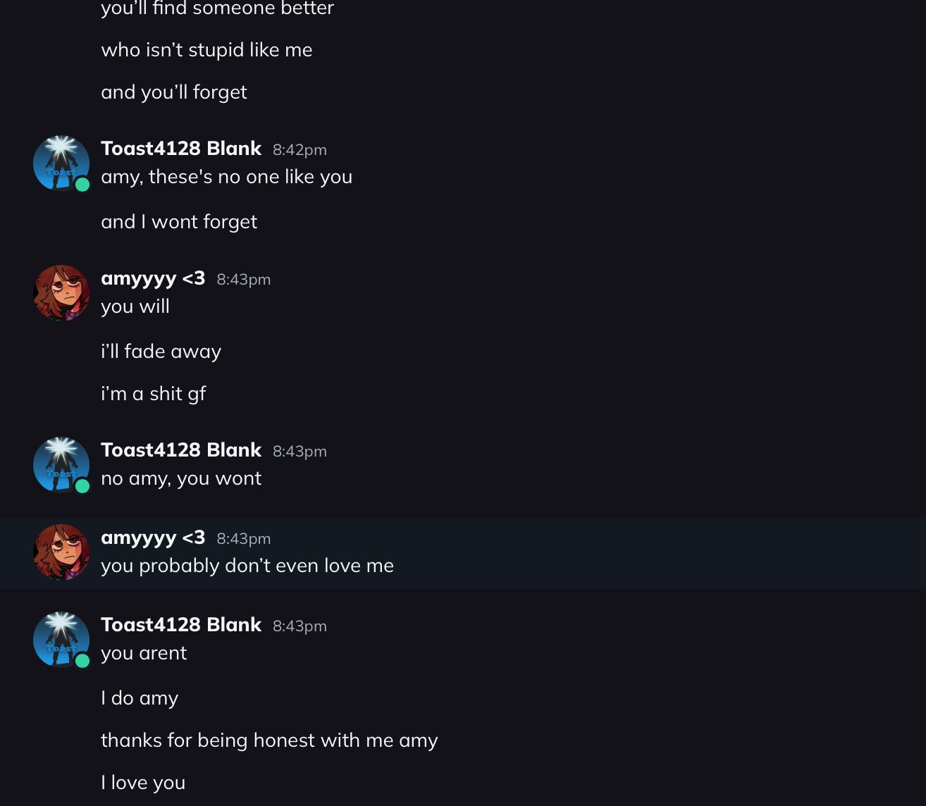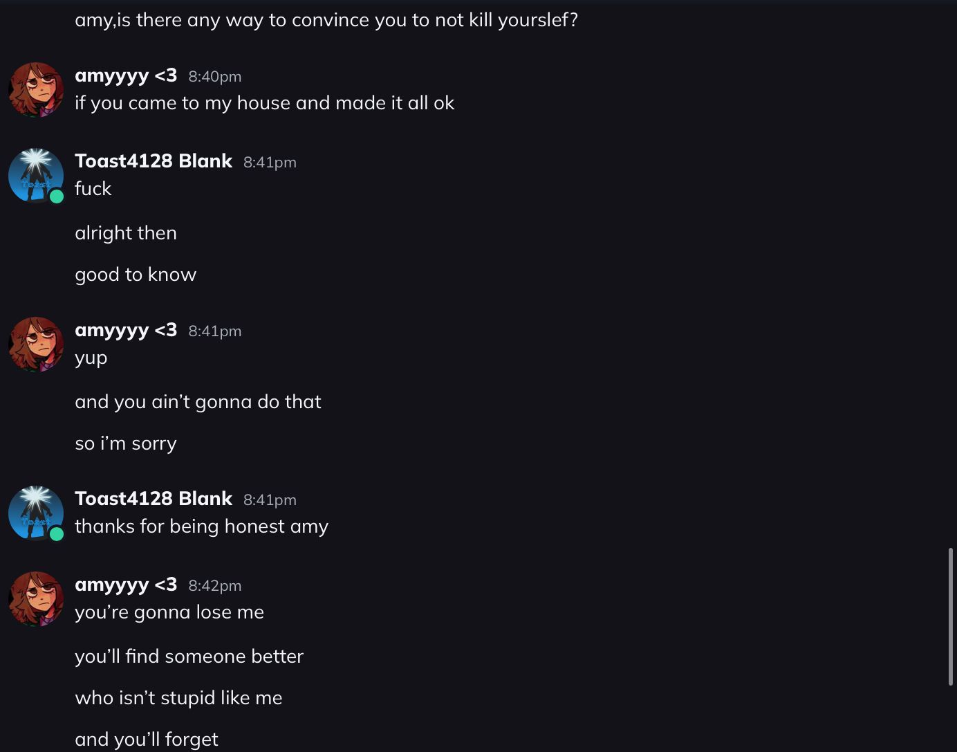 yeah, she kept saying like, join me its not worth living, and like, just join me and shit