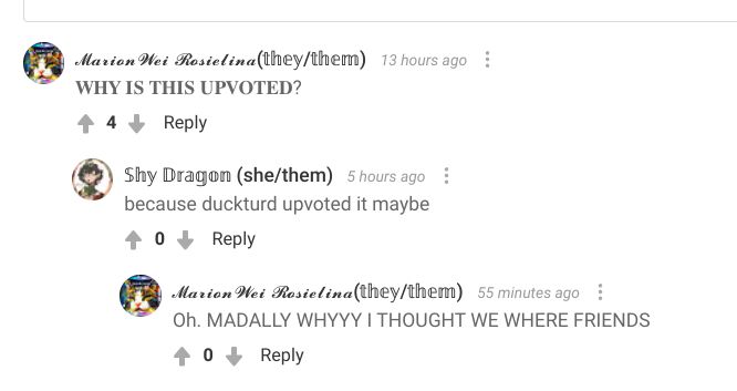 HAHAHAHAH LOOK AT THIS SHIT โOkay, so: My choir teacher, the sweetest most amazing person ever, put up a sign that said Protect Trans Kids in her classroom. One day, it was gone, and I guess someone had torn it down. That night, I stayed up until 11 making a new one with the trans flag and the progress flag, and I had it say Protect Trans (& Nonbinary) Kids. It stayed up for a few weeks until last night. So, last night was closing night for the play I was in, and I walked into the choir room and IT WAS GONE. Bear in mind that theatre is a very accepting community and a safe space for LGBTQ+ people. I was horrified. I found it in the trash can, ripped to pieces. I asked people if they had seen who took it down, until one girl, who I was friends with, declared "I took it down" like she was proud of it or something!!!! WTF??!! I was furious. I can't even describe how much I hated her in that moment. Do you want to know why she took it down? It's because it was right under a sign that said 'God is safe and He is love.' THE DAY BEFORE THIS HAPPENED, SHE LITERALLY WROTE 'HE LOVES ALL' ON THE WHITEBOARD!!!!! WTFFFFFF!!!!!!! I stormed out of the choir room and yes, I may have said she was a b*tch, but not to her face anyways, and I think I was justified? Anyways, my best friend was trying to defend her and I was so pissed like how can you stay friends with someone who could do something like that?? I burst into tears and sobbed for most of the show. Also, some people from the production wrote stuff like 'Love is love, repect everyone' on sticky notes and put it where the sign used to be. I can't believe someone would just rip it down like that. It f*cking hurts. I took that opportunity to come out to my mom. โ