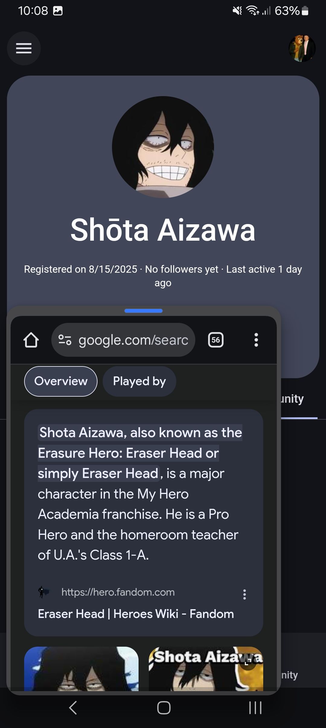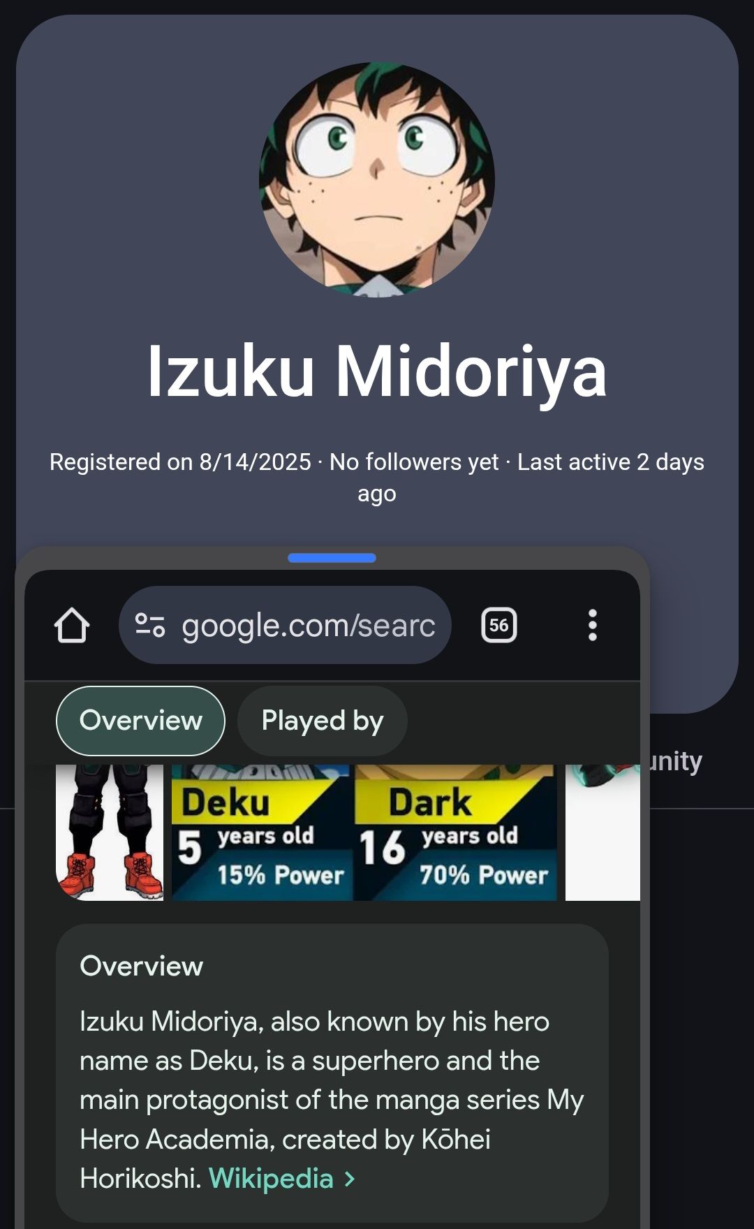 2 similar interests, MHA seems to be a reoccurring theme with most of the anime alts, all having, usernames and conversations abt the MHA community and story plots, etc