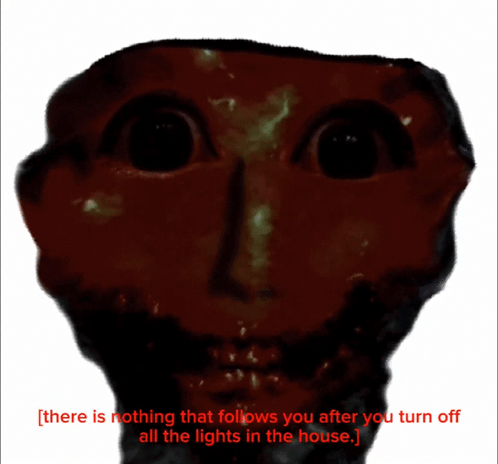 Another one? This thing looks like a burnt potato with eyes. And that text? Pure lies. Clearly, something follows you when the lights go out. This is a joke for idiots.