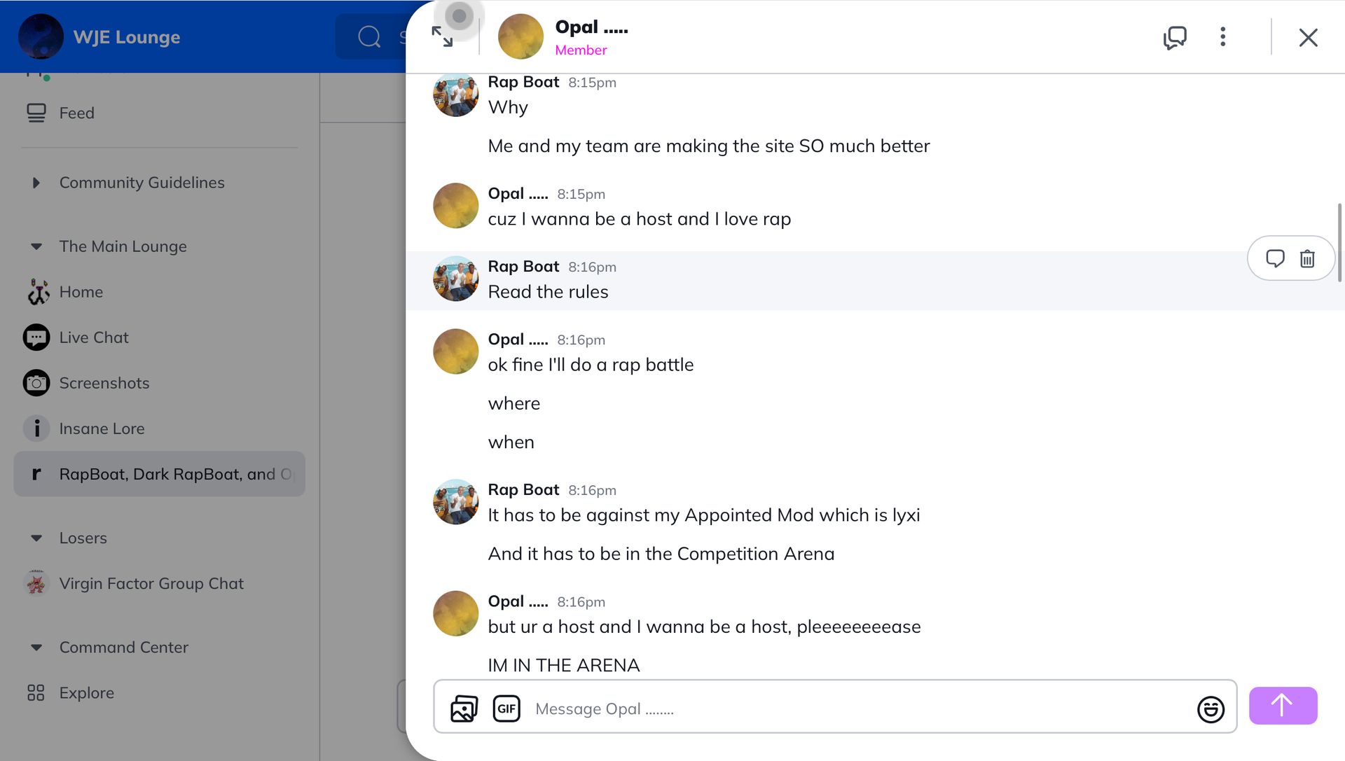 opal is into kpop and all of that sorts, rapboat is the complete OPPISITE of opal