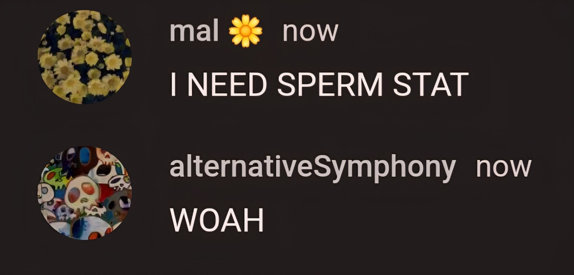Alright, smoothbrain, this whole "sperman juice" and "I need sperm stat" thing is just proof that your brain is as empty as a forgotten joke. Mal wants sperm to speak "sperman"? That's just sad. And you're here posting about it like it's groundbreaking. Get a grip, all of you. Your comments are as useless as a screen door on a submarine.