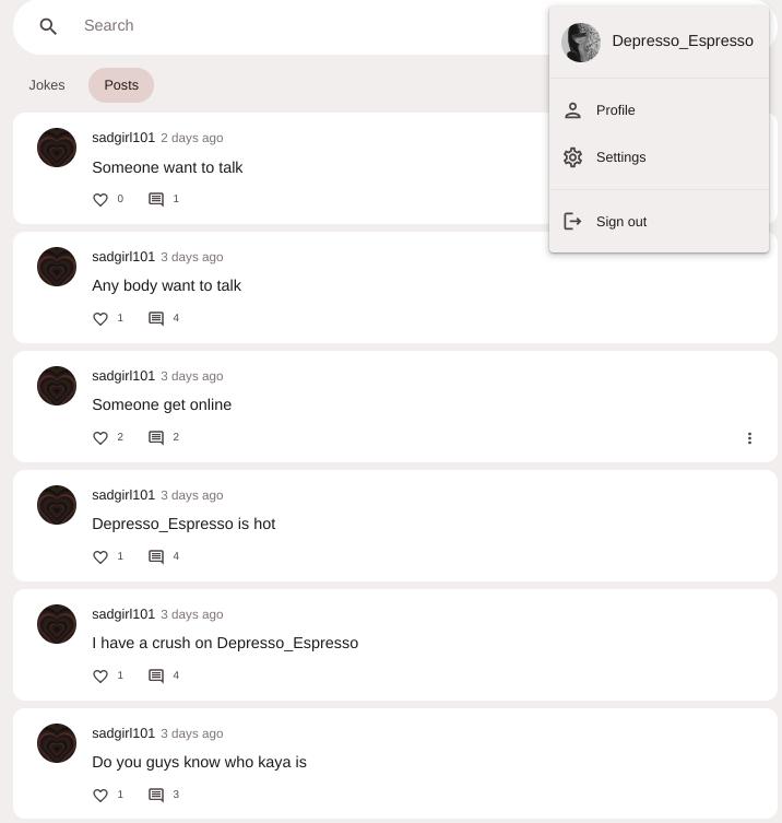 Depresso_Espresso3 years agoshe is calling me hot and she knows my real name and she has a crush on me