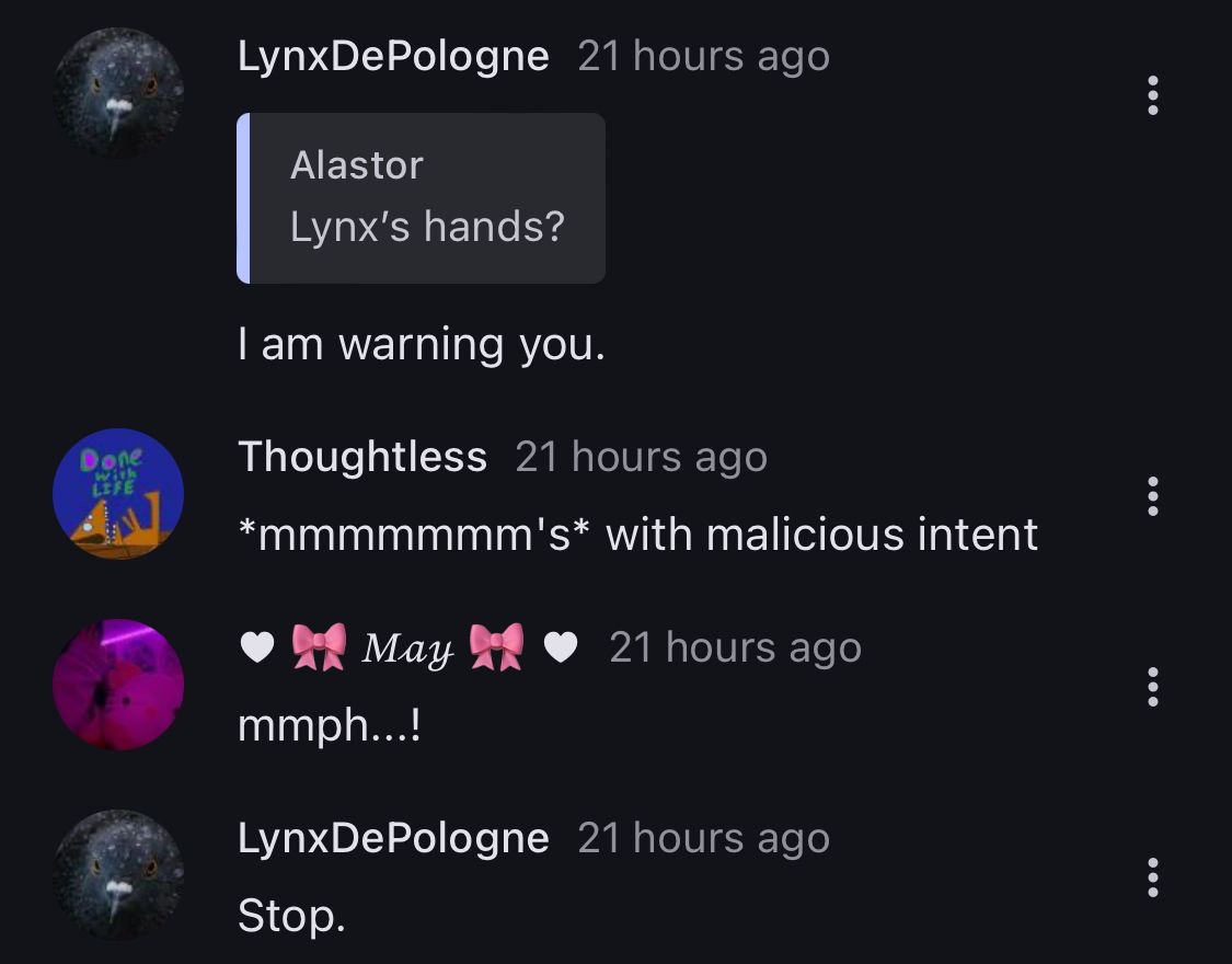 Anonymous2 years agobasedpedophillia“Delulu” like I give a shit that you’re obsessed with being raped.im not
