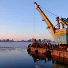 Heavier babies are delivered by crane.