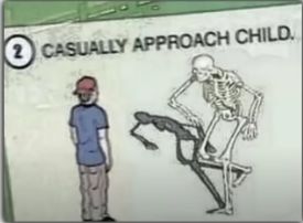 "Hey little girl! If you give me a teeny-tiny kissy-kiss on the tip of my wee-wee, I'll give you a piece of my chocolate!"