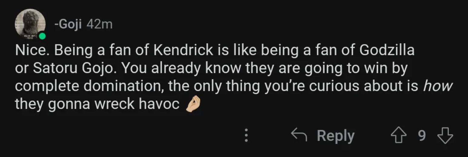 I like Kendrick, but GEEZ LOUISE, the dickriding is crazy