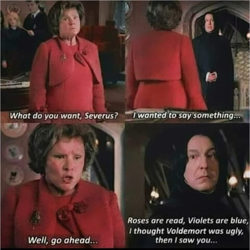 Roses are red, violets are blue, I thought Voldemort was ugly, but then I met you.