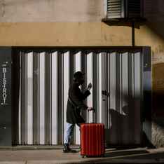 A Muslim enters a building with 100 passengers and an airplane.